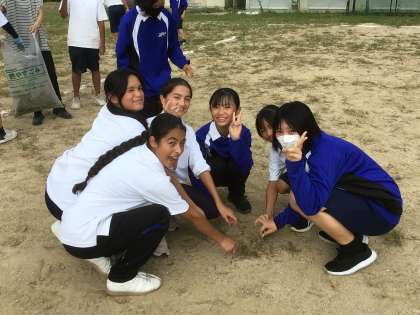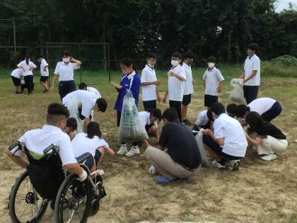 1年生が学年全員で運動場の草取りを行いました。