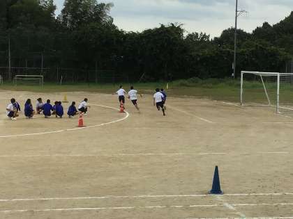 体育では全員リレーの練習をしています。