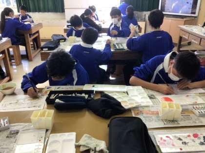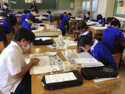 美術では着色をすることによってパレットの有効な使い方について学んでいます。