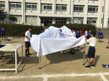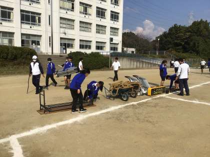 3年生が明日の体育祭の準備をしています。素晴らしい体育祭になるようがんばっています。