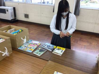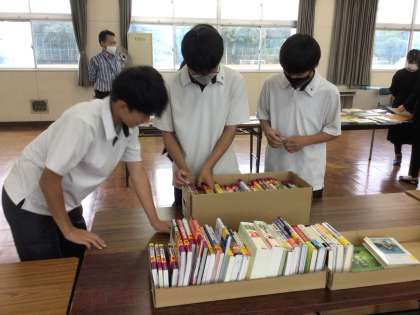 図書館流通センターより見本を搬入していただき、図書スタッフを中心に図書館に入れたい本を選んでいます。