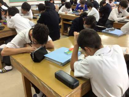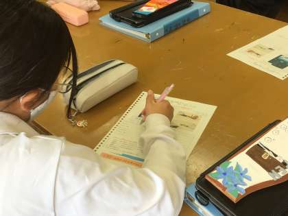 美術では小学生に保見中学校を紹介するコマドリアニメを作り始めました。