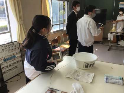 紙すきの技術を用いて、みんなで協力してハガキを作る活動に取り組んでいます。