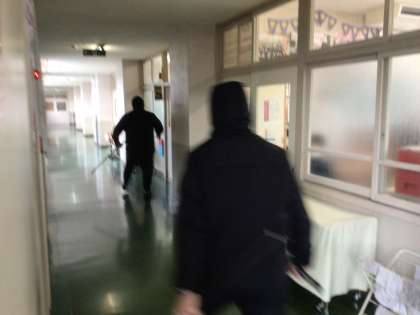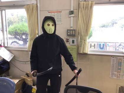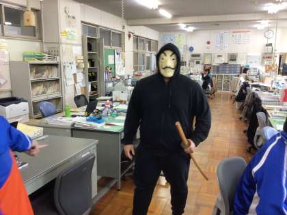 2人の不審者が校内に出現したという設定の不審者対応訓練を行いました。