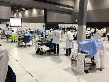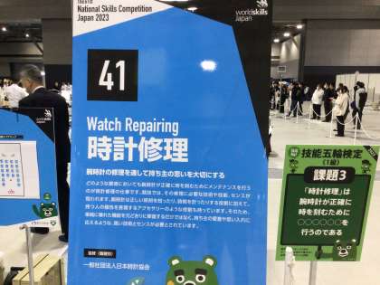 会場内の様子です。時計修理のブースです。昨年度の金メダリストの女性がデモストレーションでクオーツ時計のムーブメントの分解修理をしていました。