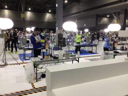 理容技能の様子。髪を染めてカットしていきます。