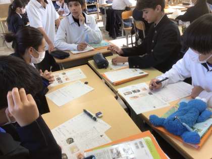 家庭科では煮込みハンバーグの調理実習に向けてグループごとに計画を立てています。