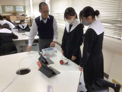 技術ではプログラミングした通りにロボットが動くかを確認しています。