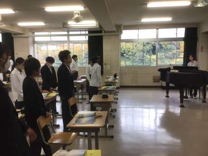 本日より音楽の授業が再開されました。「浜辺の歌」の歌唱を行っています。