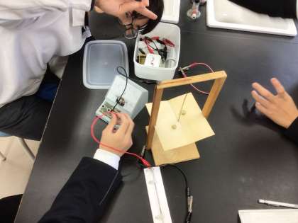 理科では電流による磁界の変化を実験で検証しています。