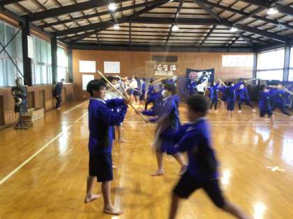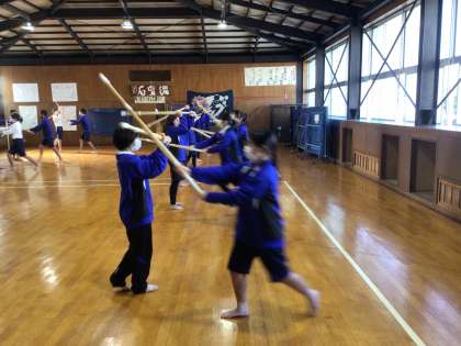 体育の剣道では面打ちの動きを反復練習しています。