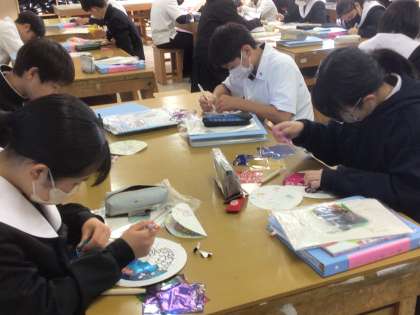 美術で作成している卒業制作のステンドグラスがどんどん完成に近づいています。