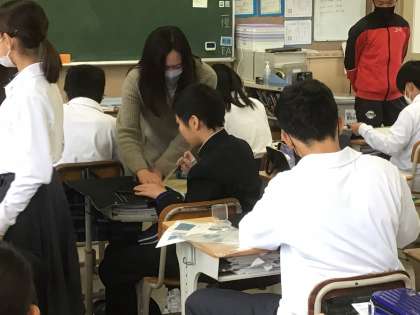 家庭科ではリバーシブルトートバックの裁縫を行っています。