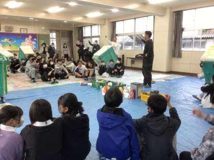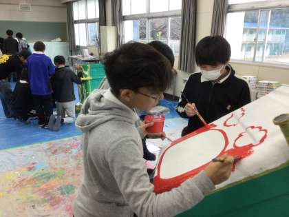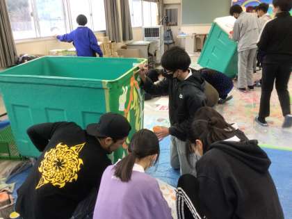 1年生の有志がアーチストさんとともにダストボックスのペイントを行っています。