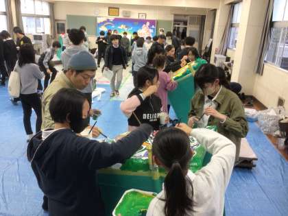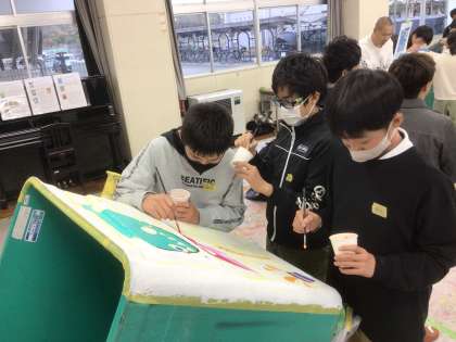 ダストボックスのペイントが着々と進み、鮮やかなアートが完成に向けて近づいています。