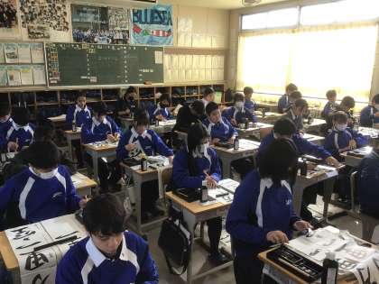 1年生の書き初め大会の様子です。