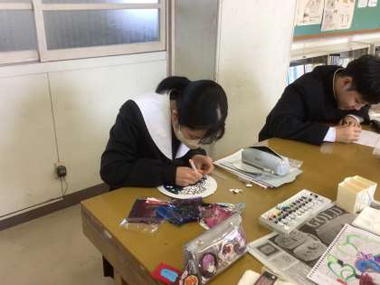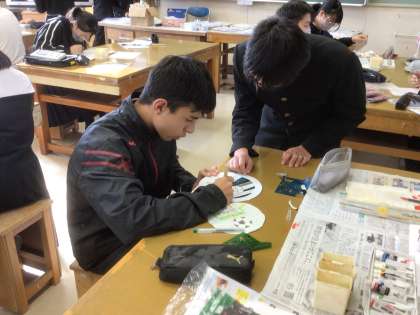 美術で制作しているステンドグラスが完成に近づいてきました。