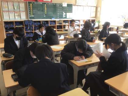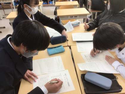 木曜日に実施予定の保見フィールドワークに向けて先生から注意事項を聞き、確認事項をグループでまとめています。