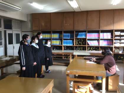 学級活動では友達や先生を相手に面接の練習を行っています。