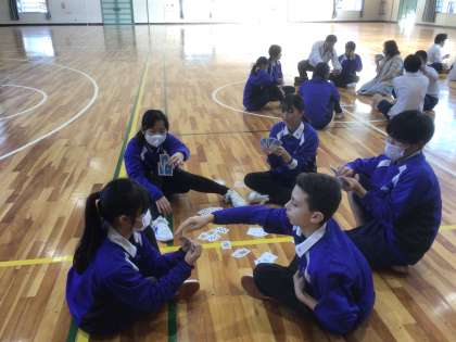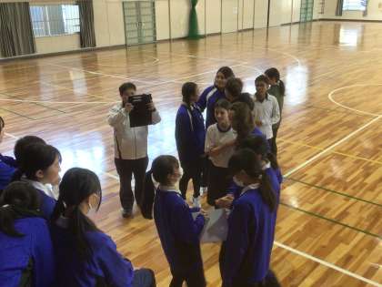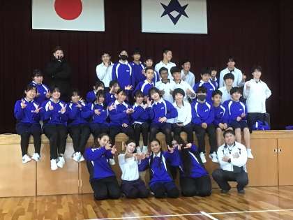 転校していく生徒が楽しい時間を過ごせるようにと学級レクを行い、記念撮影をしました。