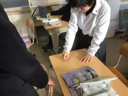 理科では机につけた吸盤を引っ張ることで気圧について実感しています。