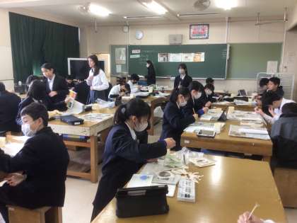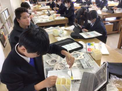美術では季節のイメージに合わせたデザインを考えて配色しています。