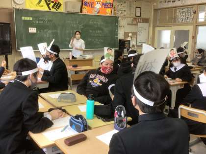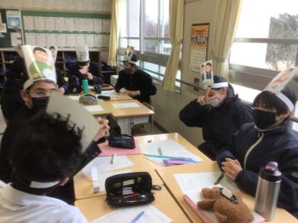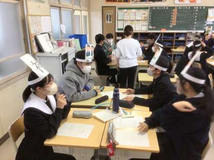 家庭科ではロールプレイを通してより良い家族関係について考えています。