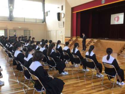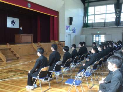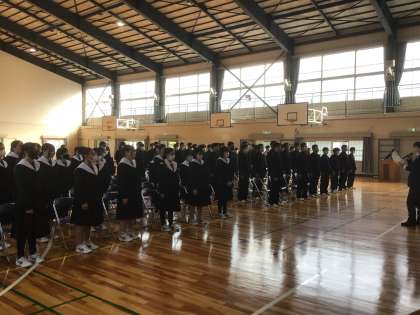 体育館での卒業式練習が始まりました。全員で雰囲気を作り、厳粛な中で式の流れを確認しています。