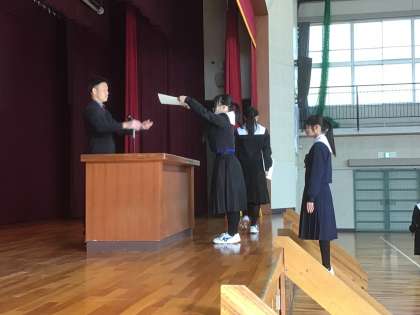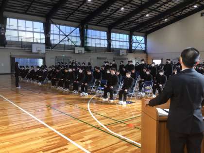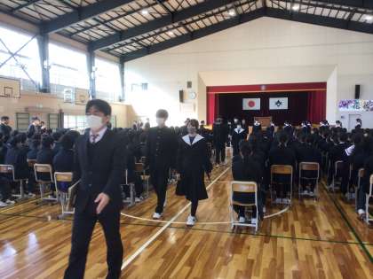 卒業式の全校練習を厳粛な雰囲気の中で行いました。