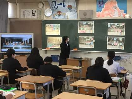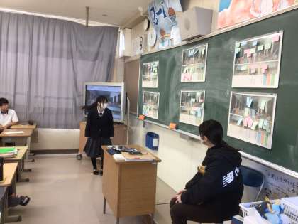 国語では鑑賞文の書き方を学ぶため、絵画を見て気づいたことを発表しています。
