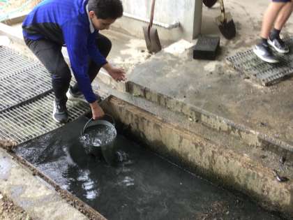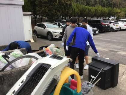 先日の地域貢献活動のゴミ分別や側溝の掃除をしています。