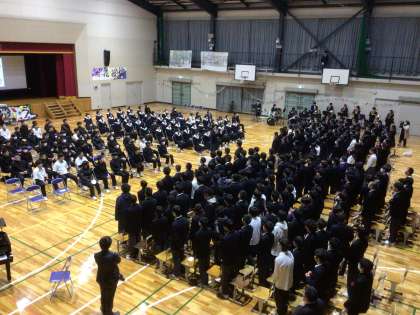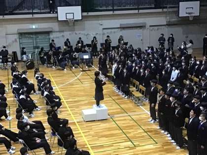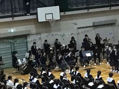 後半は1・2年生から歌のプレゼントです。吹奏楽部の伴奏にのせてRPGを熱唱しました。