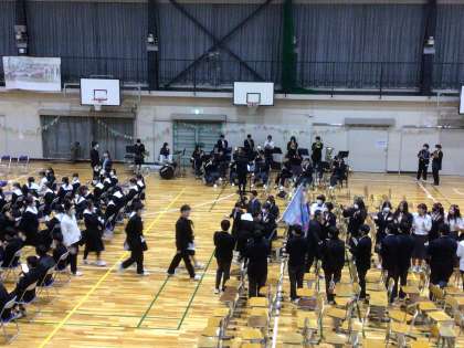 1・2年生の花道と吹奏楽部の演奏に見送られ3年生が退場しました。