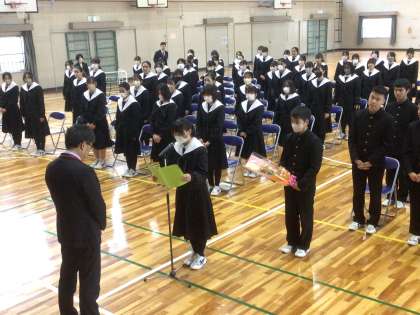 最後の卒業式練習を終え、校長先生からのエールを聞き、校長先生へ感謝の言葉を伝えました。