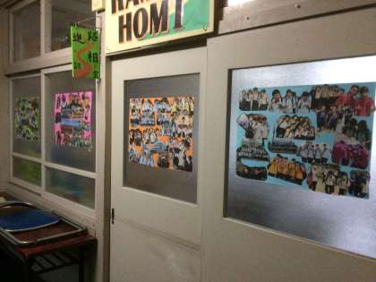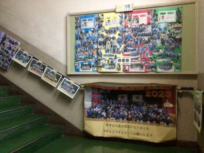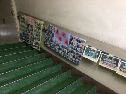 3年間を振り返る掲示物で卒業生の登校を迎えています。