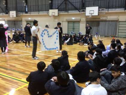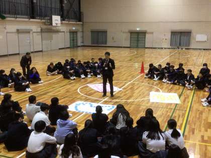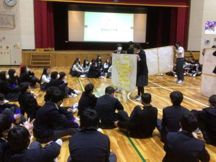 完成した記念品が披露され、校長先生からの話を聞きました。