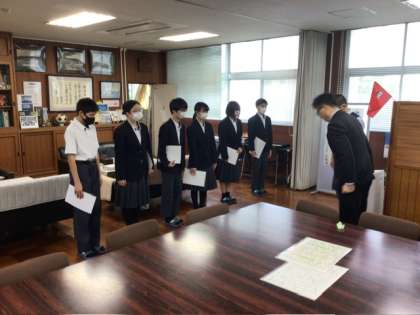 4月24日(水)2年生の学級役員(級長、書記、代議員)の任命式が校長室で行われました。