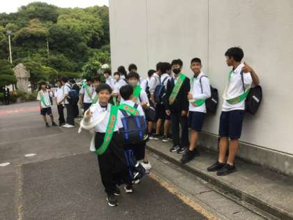 生活スタッフによる、帰りのあいさつ運動の様子です。部活の無い日の下校時に行っています。