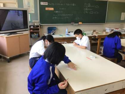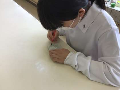 1年生美術の授業の様子です。ペーパーウエイトの作成をしています。