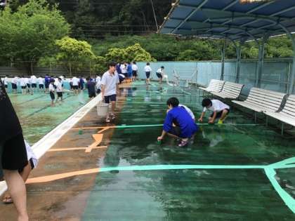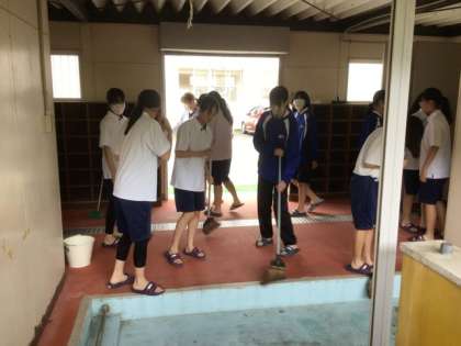 プール掃除の様子です。