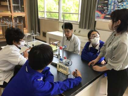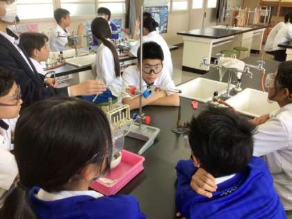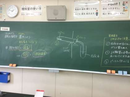 酸化銅に炭素を混ぜて加熱し、酸化銅の還元の実験を行いました。