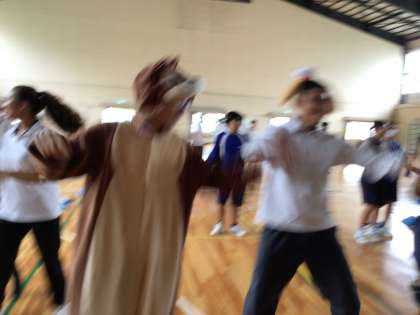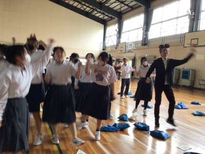 修学旅行の班活動やディズニーの過ごし方について、体育館で学年集会を行いました。最後にみんなでジャンボリーミッキーを踊りました。修学旅行まで、あと4日!