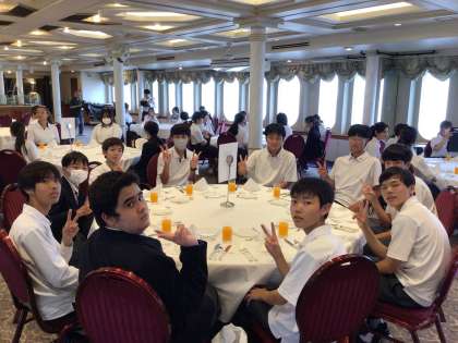 船に乗って、マナーを学びながら夜ご飯をいただきます。