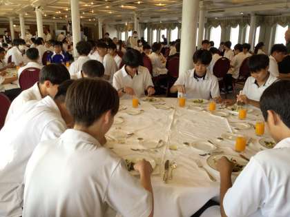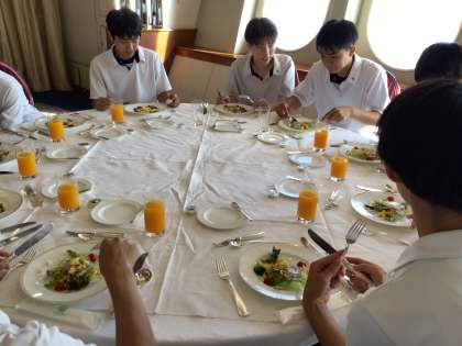 マナー講座を受けながら食事をしています。