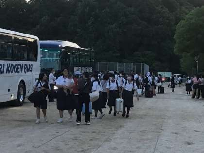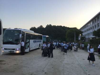 お迎えに来ていただきありがとうございました。遅れてしまい申し訳ありませんでした。最後にみんなが降りた後にバスの中に落ちているゴミを拾ってくれる子もいました。この3日間は生徒達にとって思い出に残るよい旅行になりました。