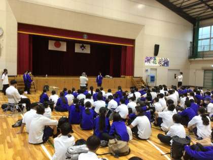 2年生の自然教室です。出発式が行われました。
