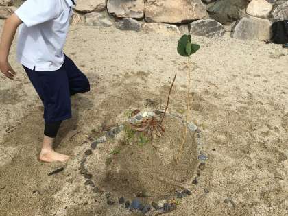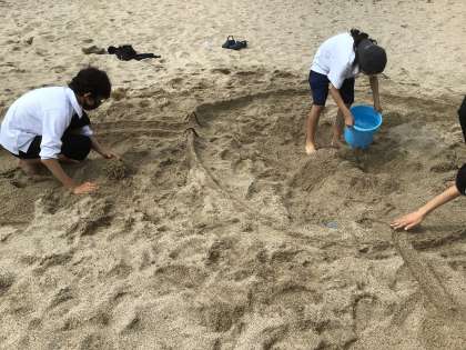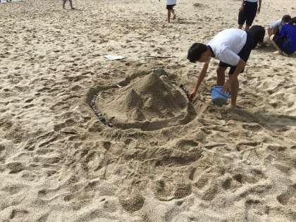 砂浜活動第2弾 砂で城を作ります。あとで審査があります。