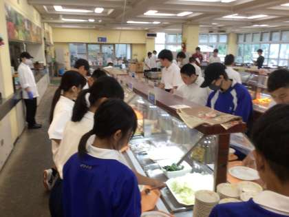朝食を食べました。トビー食堂では最後の食事です。サラダ、スクランブルエッグ、パン、シュウマイ、魚フライ、味噌汁、納豆、コーンフレーク、ミルクでした。