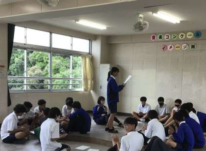 7月17日の文化的行事(ボディパーカッション)の練習の様子です。写真は3年生です