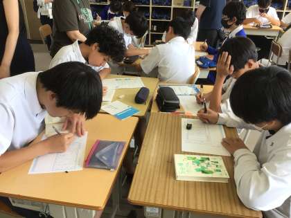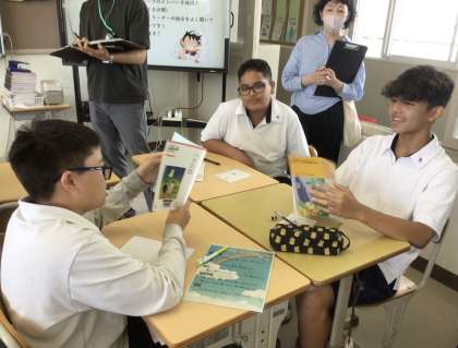 2年生の読書プログラムの様子です。自分に合った本を選び、内容を要約して、伝え合う活動を行っています。